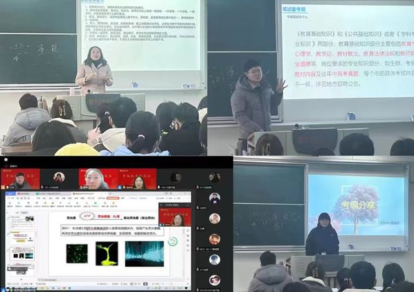 公司多位老师进行考编指导,为员工开展线上面试模拟课堂,党总支副书记李霞从面试流程、重点难点等方面系统阐述近年面试的侧重点,吴生才教授凝练了初中生物课面试的九大要点,强调考生应注重培养核心素养,员工积极整理,消化专家指导,做到扬长避短。李书记和辅导员王坤老师迅速组织线下考编指导,精准传达简历制作、着装举止、课堂导入、板书设计等核心环节,为员工在笔试方面详细解惑,由浅入深,从点到面,分层突破,增强了员工考编的信心。