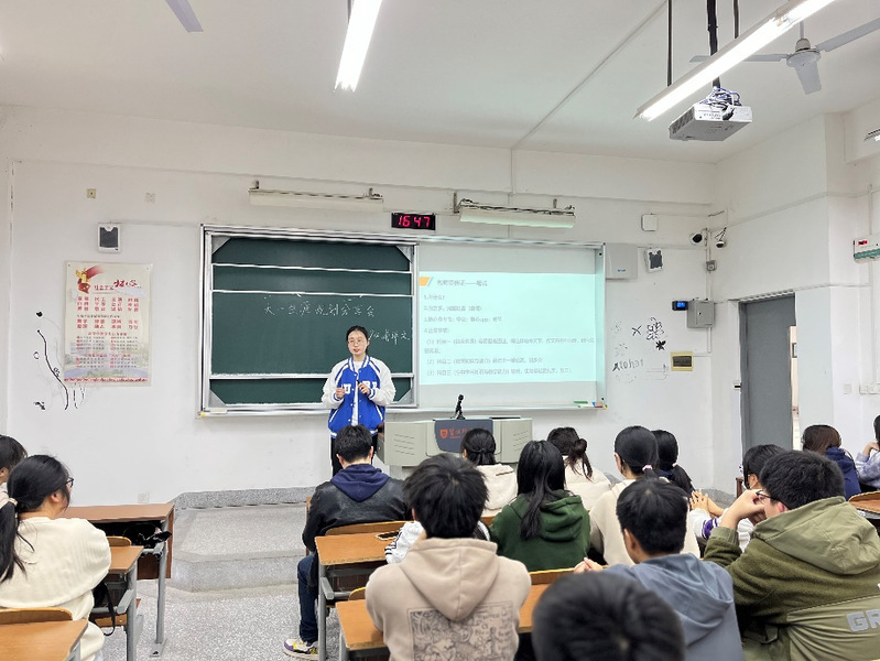 讲座还邀请到2023年省师范生教学基本功大赛个人一等奖获得者浦译文为定向班同学介绍师范生大赛备赛经验,提醒大家要严于律己,作为定向班员工在大学期间不能“躺平”要努力提高综合素质,打造更好的自己。