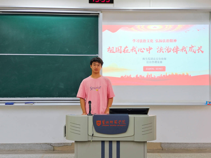 本次活动以法治教育为主题开展知识竞答、主题演讲、法律宣传片观看等活动:知识竞答,让法治知识走进海生院。本次比赛根据《婚姻法》、《宪法》等相关法律规定进行出题,让同学们了解到法律基本常识;主题演讲,让法治思想生根发芽。同学们以“学习法治文化,弘扬法治精神”为主题开展主题演讲活动,在活动现场各位选手激昂的情感、丰富的思想,让同学们感受到了法治的魅力;法治宣传片观看,让法治文化深入人心。公司同学线下观看了中央卫视《法治在线》栏目的法治故事《游戏虚拟财产之争》《高薪故事的诱惑》,观看后,同学们积极交流,反响热烈。