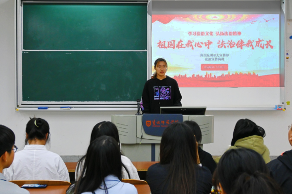 生科215班王奕同学说:“这次活动从‘什么是社会主义法治文化’、‘如何弘扬法治精神’等方面,结合现实案例,给我们作了一系列深刻的法治宣传教育,让我们学到更多的法律知识,也增强了我们学法用法守法护法的法治意识。”