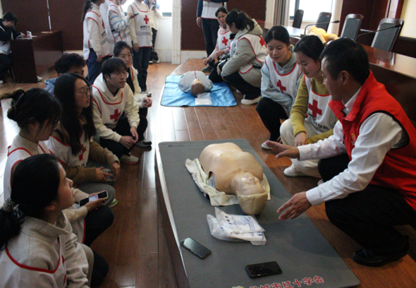 3月17日,海生院50名志愿者们前往盐城市红十字应急救护培训基地接受急救知识培训。在培训教师的指导下,每位志愿者都进行模拟急救演练,通过实践巩固救援知识,掌握现场急救的基本技能,也为今后能够更好地帮助他人奠定良好的基础。