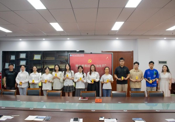 党总支书记姚林、党总支副书记李霞为毕业生党员代表赠送签名印章,为毕业生党员庆祝“政治生日”,叮嘱大家时刻不忘自己党员的“第一身份”,在新的岗位上继续发挥先锋模范作用。