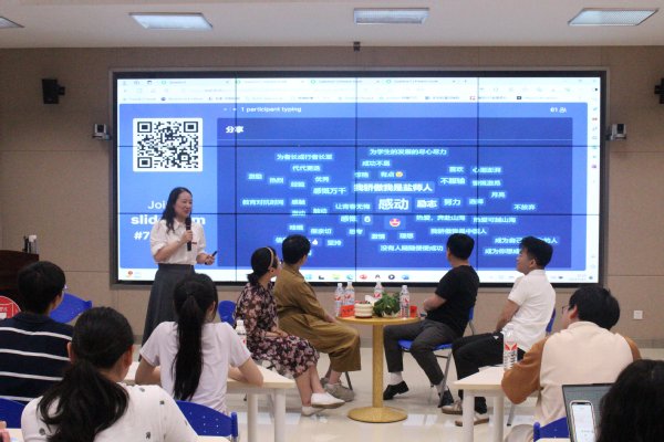 一代人有一代人的长征路,盐师五代人的奋斗历程诠释着教育初心,育人使命。2个多小时的时间,伴随有slido互动式提问,词条“感动”、“不甘平凡”和“道阻且长,行则将至”等真切感悟跃然屏上,同学们意犹未尽。分享交流中,同学们进一步明晰了规划与择业方向,纷纷表示要从现在做起,志存高远,脚踏实地。