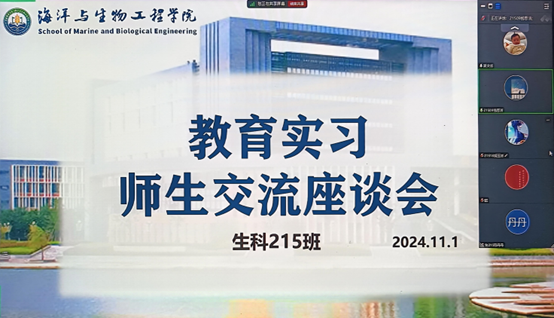 为深入了解2021级生物科学(乡村定向培养)专业师范生的教育实习情况,进一步改进实习指导和管理,11月1日,公司组织召开师生线上交流座谈会,指导教师代表夏文龙,在外教育实习的员工代表参加了此次会议。