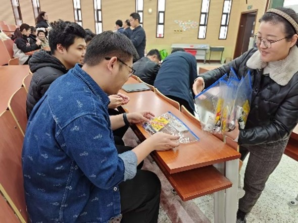 随后,各位领导老师将梦想种子卡和考研暖心礼包送到员工手中,同时殷切询问考研学习情况,给同学们加油鼓劲。