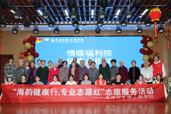 双方签约揭牌后,志愿服务师生参观福利院自理区、活动中心等功能区域,并发放老年人膳食指南健康手册。生物科学221班志愿者沈书珺围绕食品与健康为老人们开展了科普讲座,普及膳食搭配等食品营养知识,帮助老人树立科学饮食观念。