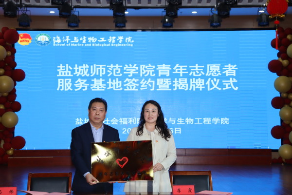 3月26日,必一运动bsport体育与盐城市社会福利院签约共建青年志愿者服务基地。盐城市社会福利院经理冯炜、副经理程畅,海生公司党总支副书记李霞及师生志愿者代表出席揭牌仪式。