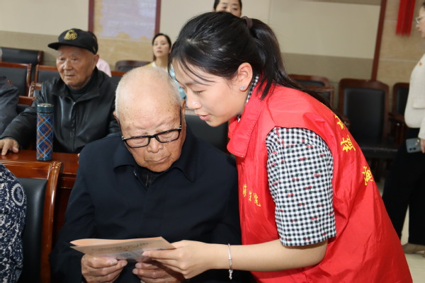 双方签约揭牌后,志愿服务师生参观福利院自理区、活动中心等功能区域并发放老年人膳食指南健康手册生物科学221班志愿者沈书珺围绕食品与健康为老人们开展了科普讲座,普及膳食搭配等食品营养知识,帮助老人树立科学饮食观念。