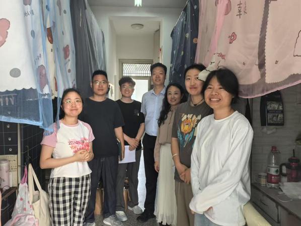 走访中,朱京凤与李霞一行逐一走进毕业生宿舍,与员工亲切交流,详细了解就业进展、读研准备以及毕业生论文收尾工作。对于即将读研的员工,老师们建议同学利用假期做好规划;对于即将进入事业编的员工,老师们建议同学们做好教书育人的准备工作。