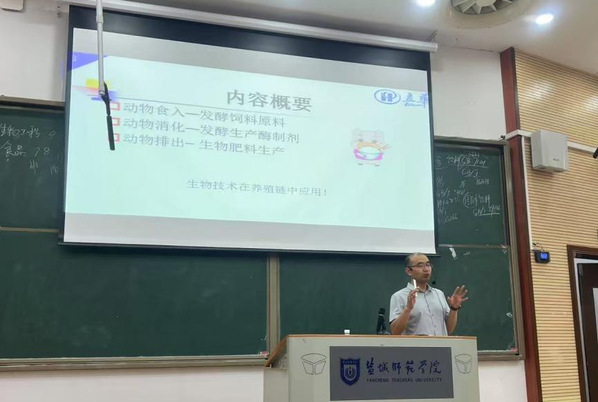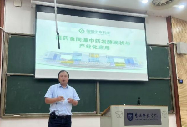 讲座现场气氛热烈,企业家们紧扣行业前沿,结合自身创业实践,从多角度、多层面为在场师生带来了精彩分享。江苏菌钥生命科技发展有限公司总经理助理蔡金文围绕“菌药食同源”中药发酵的现状与前景进行了深入剖析,展现了生物工程在健康产业中的广阔应用空间。江苏立华牧业股份有限公司饲料技术总监朱沛霁结合传统畜牧业,分享了生物工程技术在饲料创新与产业升级中的实际经验。省级非遗传承人、盐城陈氏食品有限公司创始人陈华文则以滨海白首乌产业为例,展示了科技创新赋能传统产业转型升级的成功路径。盐城格丽思食品有限公司创始人张富平从自身创业经历出发,讲述了如何成长为区域连锁品牌领航者的心路历程,激励同学们勇于创新、敢于追梦。