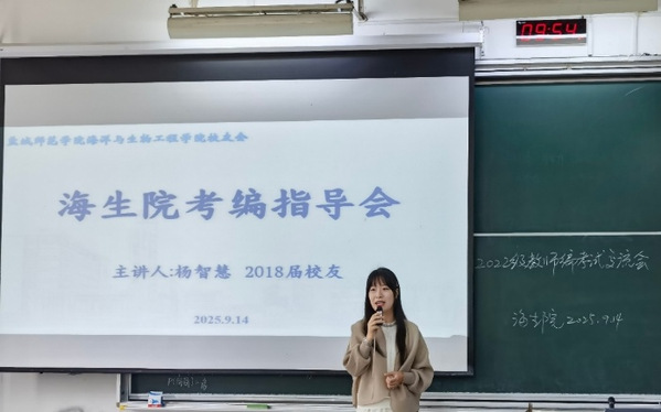 9月14日,为进一步强化师范生专业技能,海生公司员工会再度发力,特邀2018届优秀员工、龙岗中学团委副书记、中学正一级教师杨智慧返校,为同学们带来一场高水平师范技能培训交流会。公司党总支副书记、关工委副主任李霞及相关教师共同参与,活动现场座无虚席、互动热烈。杨智慧老师结合一线教学与考编实战经验,从课堂设计、互动技巧到面试礼仪等多维度展开深度剖析,并承诺分享优质备考资料,为学弟学妹持续提供精准帮助。